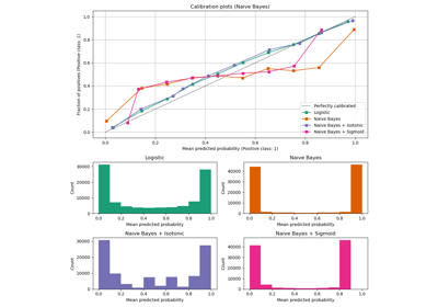 Beispiele, die die Kalibrierung von vorhergesagten Wahrscheinlichkeiten von Klassifikatoren veranschaulichen.