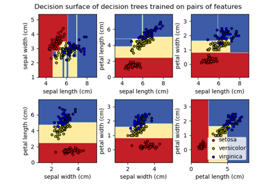 Entscheidungsfläche von Entscheidungsbäumen, trainiert auf dem Iris-Datensatz, plotten