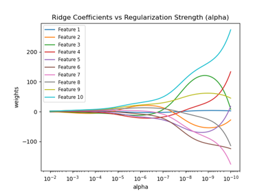 Ridge-Koeffizienten als Funktion der Regularisierung plotten